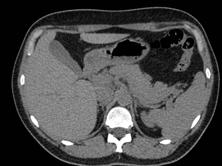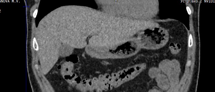 - накануне компьютерной томографии пациент проходил рентгенологическое исследование органов брюшной полости с бариевой взвесью. Это вещество оставляет на послойных снимках выраженные тени.