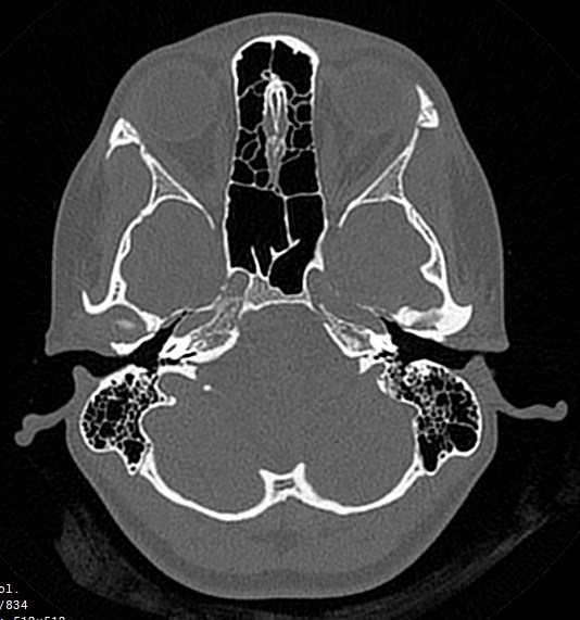 Компьютерная томография основания черепа способна выявить следующие патологии: