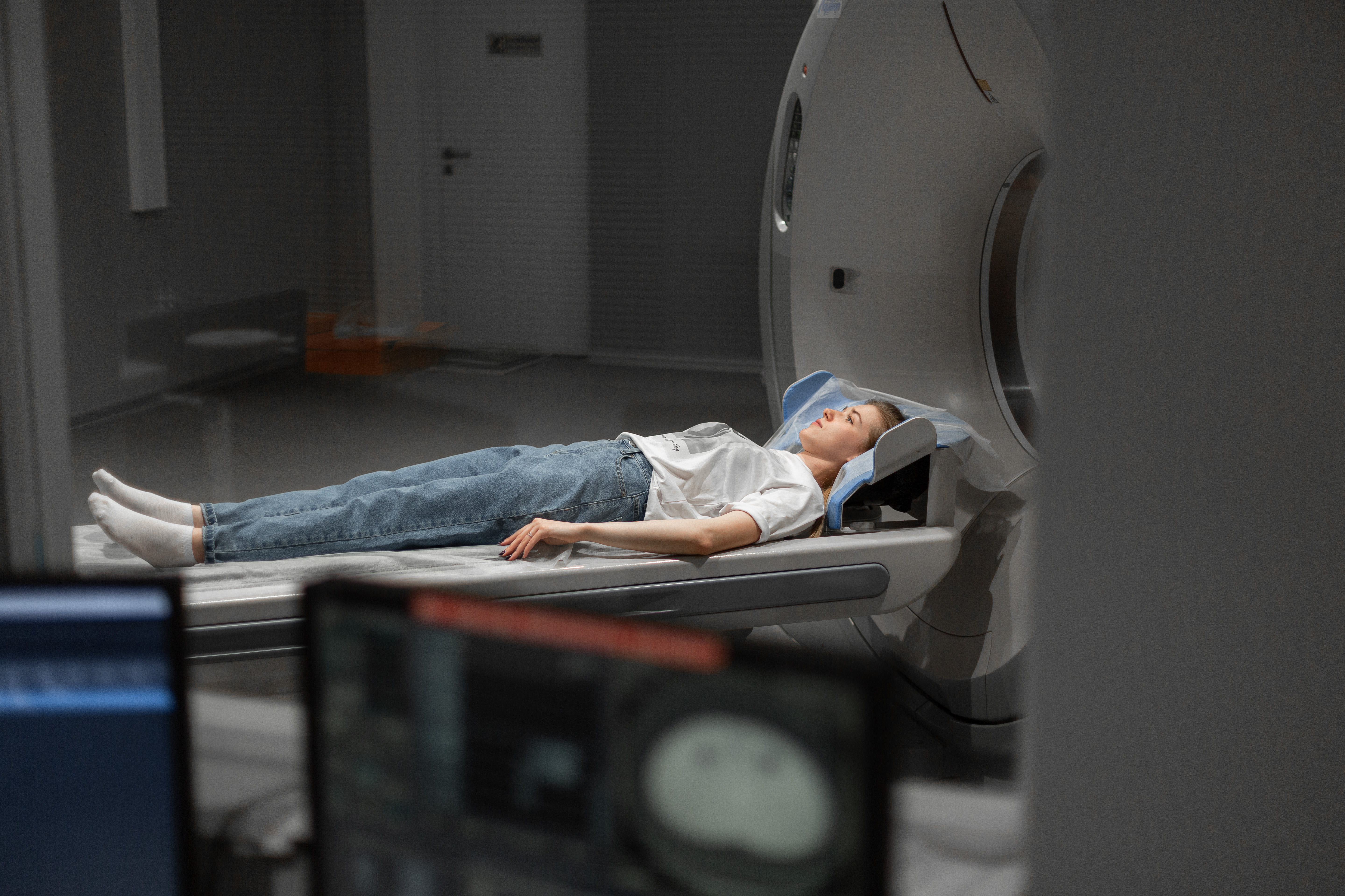 Во время исследования пациент ложится спиной на выдвижной стол томографа. Врач во время исследования находится в соседнем помещении. Наблюдение за пациентом происходит через стеклянную перегородку, связь осуществляется при помощи вмонтированного в аппарат переговорного устройства.