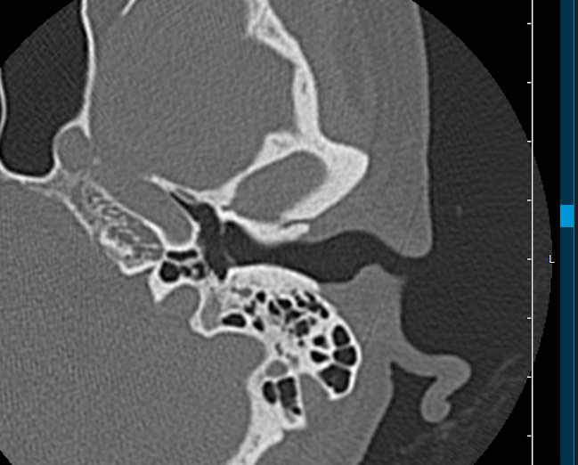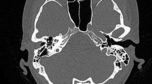Мультиспиральная КТ позволяет детально визуализировать все вышеперечисленные анатомические структуры височных костей, диагностировать заболевания среднего и внутреннего уха.