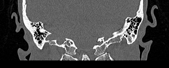 КТ наиболее информативна при черепно-мозговых травмах, воспалительных заболеваниях уха, опухолевых процессах этой области. При компьютерной томографии возможно проследить ход барабанной перепонки, оценить структурность и положение слуховых косточек (молоточка, стремечка и наковальни), оценить объем и расположение содержимого в антральной клетке или ячейках сосцевидного отростка височной кости.