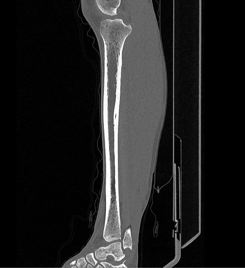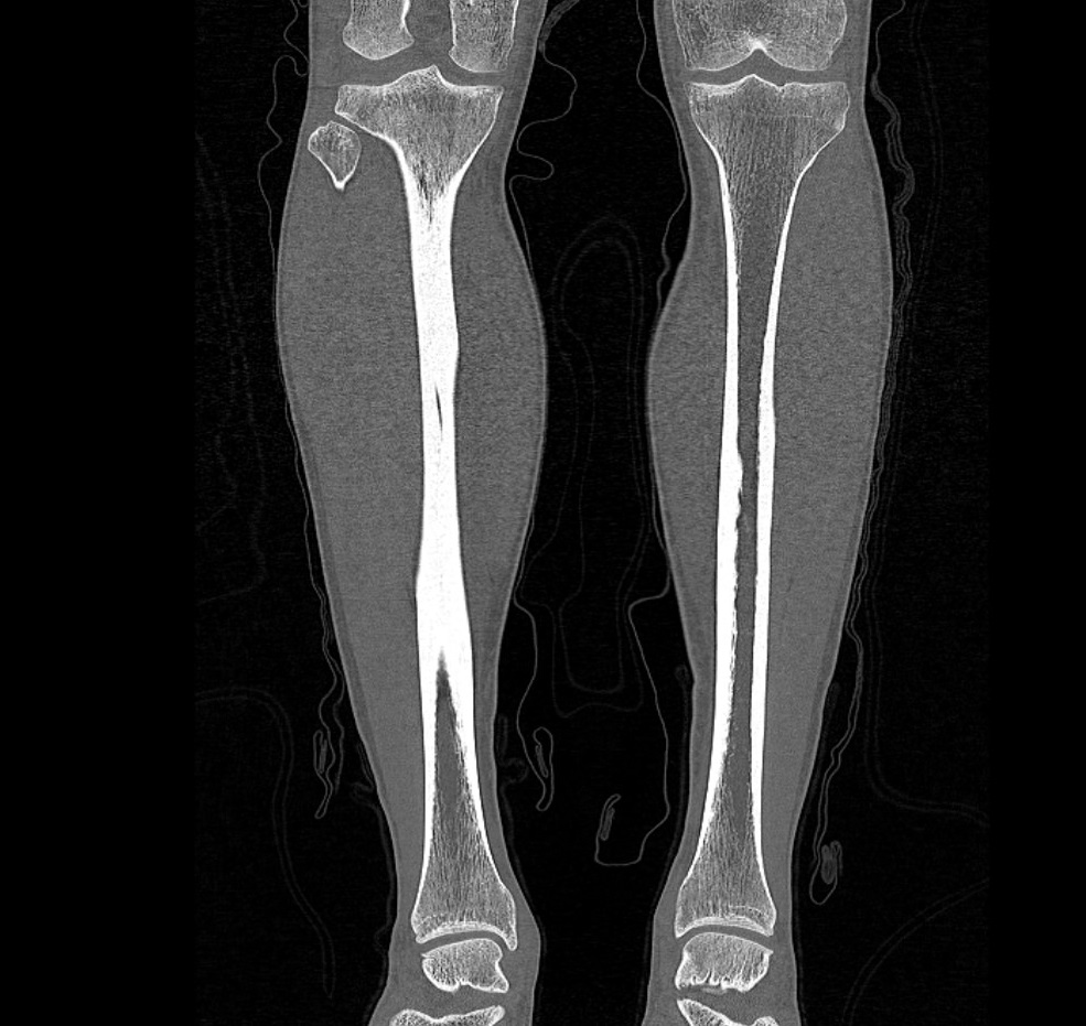 Мультиспиральная компьютерная томография позволяет оценить структуру костей голени, выявить переломы, воспалительные изменения, участки деструкции костной ткани, диагностировать опухолевые образования.