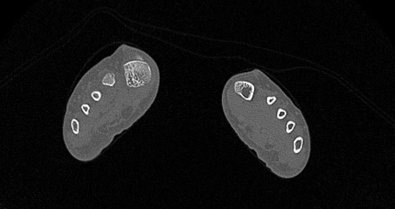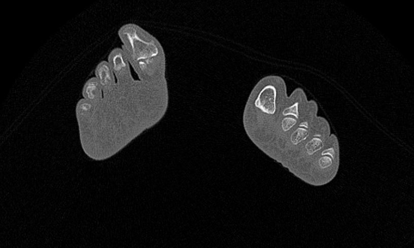 Наиболее точным и информативным методом обследования костных структур стопы является мультиспиральная компьютерная томография. КТ относится к лучевым методам исследования, то есть для визуализации внутренних органов применяется сканирование при помощи рентгеновского излучения, а затем полученные данные проходят цифровую обработку. В результате получается объемная реконструкция исследуемой области, которую можно увеличить, повернуть в разные стороны, оценить расположение анатомических структур и измененных участков в пространстве.