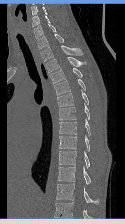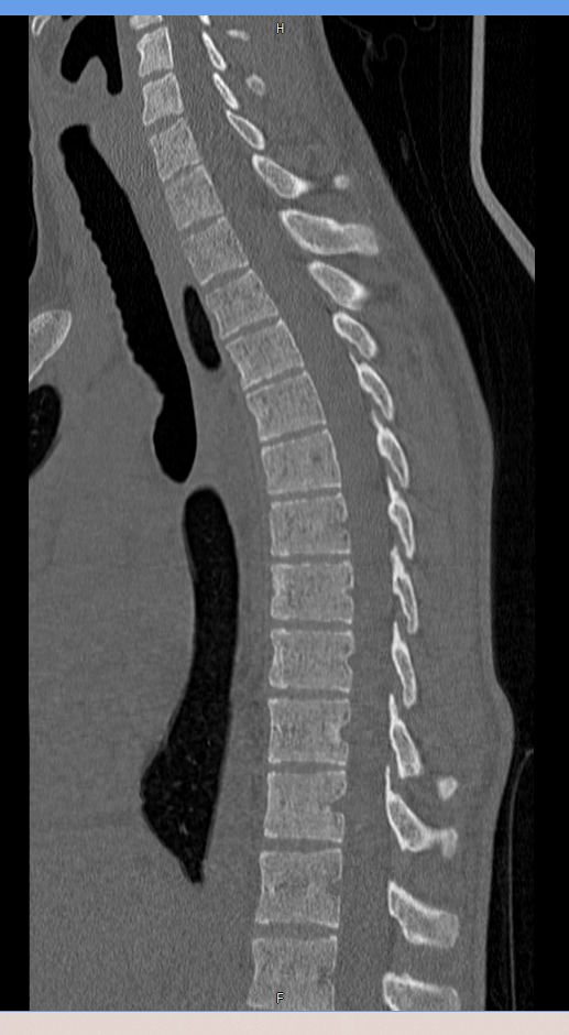 Мультиспиральная компьютерная томография – это современный быстрый и точный способ диагностики заболеваний позвоночника, основанный на использовании рентгеновского излучения. Метод позволяет получать послойные изображения грудного сегмента позвоночного столба, включая 12 грудных позвонков, задние отрезки ребер, межпозвоночные диски, позвоночный канал.