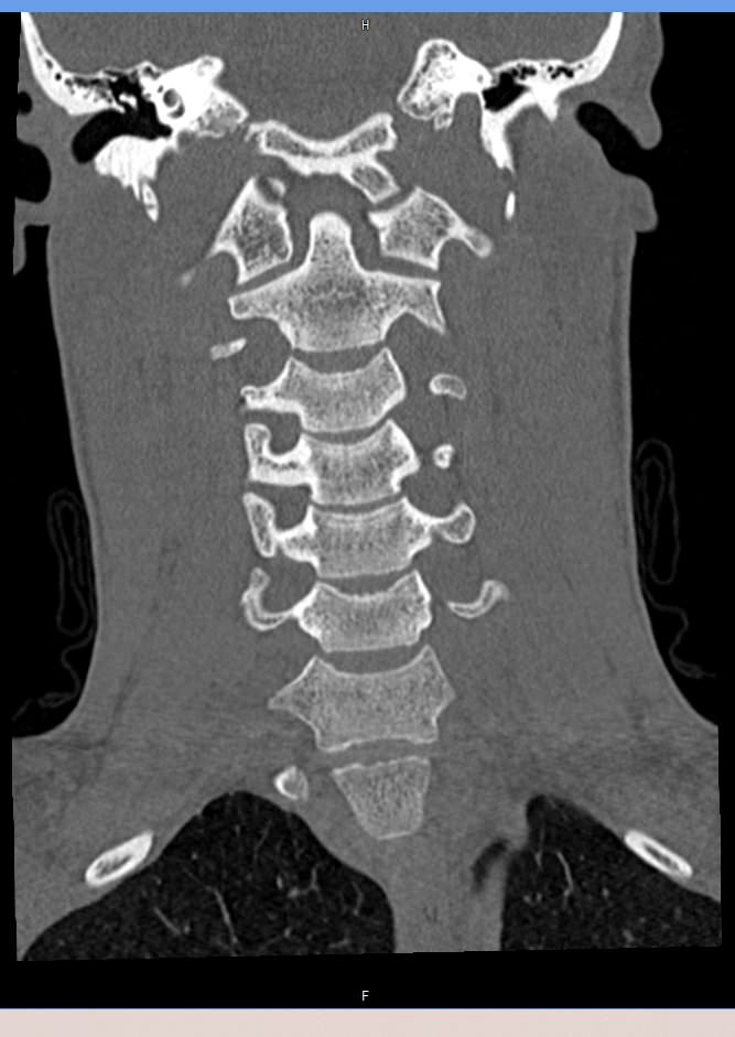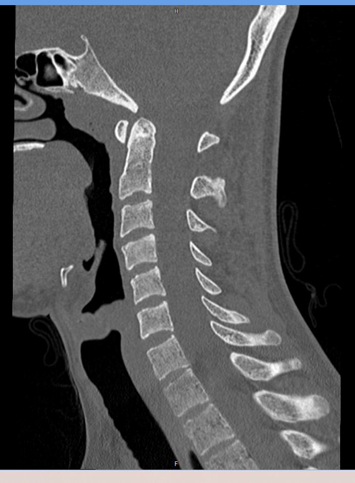 При обследовании шейного отдела позвоночника оценивается область основания черепа, семь шейных позвонков, верхние грудные позвонки. Помимо костных структур мультиспиральная КТ показывает состояние близлежащих органов и тканей: трахеи, пищевода, лимфатических узлов, кровеносных сосудов на исследуемом уровне.