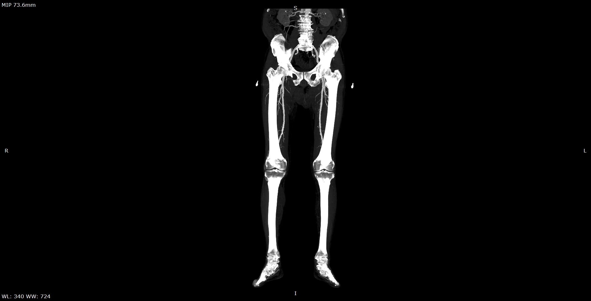 - КТ сосудов от бифуркации аорты до стопы (данный протокол обследования включает в себя полное обследование сосудов нижних конечностей, включая стопы)