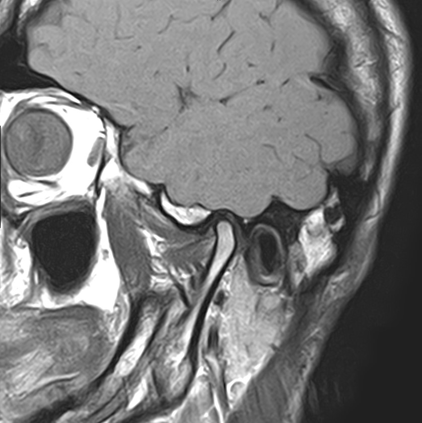 При проведении магнитно-резонансной томографии на изображениях визуализируются: височная кость, головка мыщелкового отростка нижней челюсти, суставная щель. Помимо костных структур МРТ позволяет оценить состояние мягких тканей – внутрисуставного диска и связочного аппарата височно-нижнечелюстного сустава, жевательных мышц.