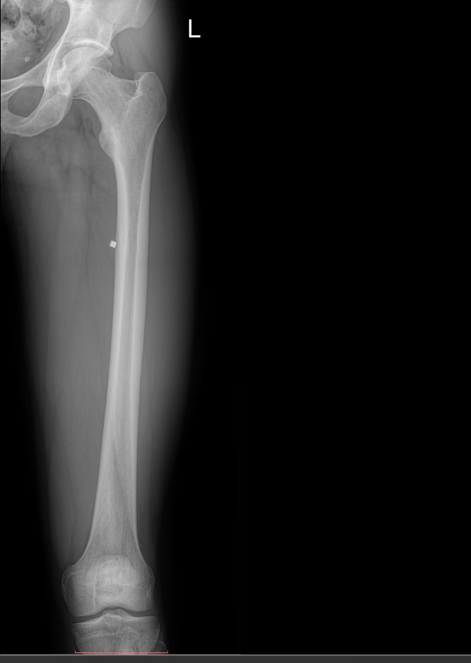 Обследование бедренной кости чаще всего выполняют рентгеновским методом. Это неинвазивный, безболезненный, высокоинформативный и доступный способ получения информации о состоянии и структуре костной ткани. Проходя через тело, рентгеновское излучение больше всего задерживается в самых плотных образования – костных, поэтому на классическом негативном снимке их изображения самые светлые. Патологические изменения, развивающихся здесь, также ясно видны. При их выявлении врач принимает решение о дополнительных видах диагностики и выбирает способы лечения.