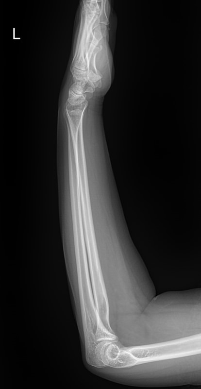 Обследование поврежденного или пораженного предплечья начинают с рентгенографии. Современное оборудование несет минимальное количество обучения и позволяет делать несколько снимков подряд, например, для контроля хирургического лечения. В снимок кроме собственно локтевой и лучевой кости попадают оба смежных сустава ― локтевой и лучезапястный. Также видны и мягкие ткани.